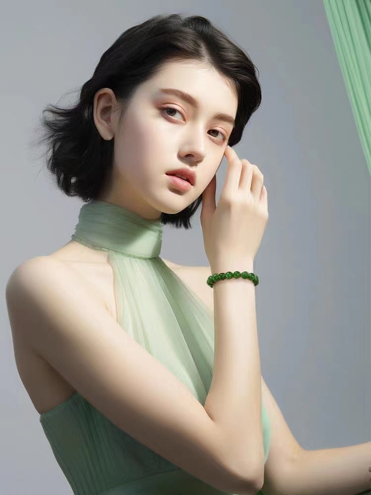 Hetian jade spinach green hand skewer-118