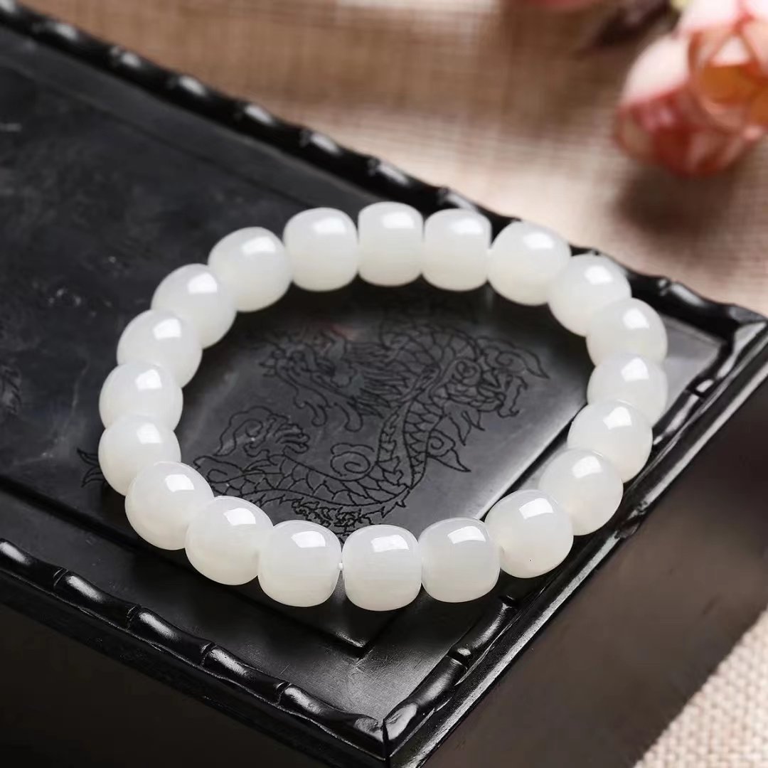 Hetian jade white jade old type bead jade bracelet-195